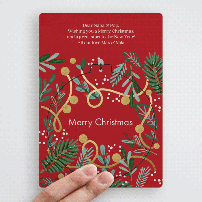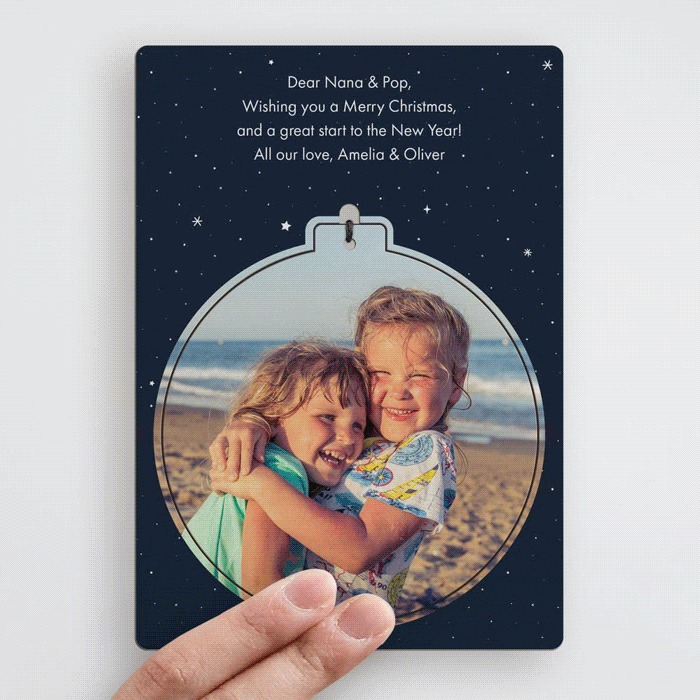 Your Personalized Christmas Decoration can double up as a Personalized Christmas Card! Simply add a short message that appears on the wooden card the ornament is presented in. It's another personalized touch to an already personalized Christmas gift.