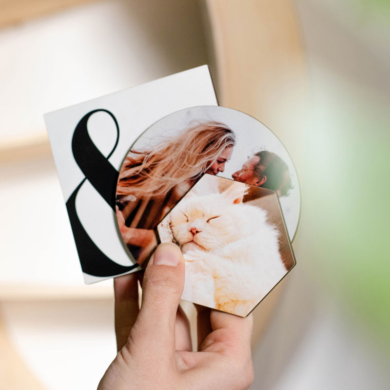 Our custom Photo Magnets can be purchased in "packs". Have your pick of Square, Circle, Hexagon, Landscape or Portrait Magnets - or turn one image into 9 pieces with our Mosaic Magnets (Mosaic only available in Standard). You also have your pick in sizes for each shape ranging from XS to XL depending on your product and shape.