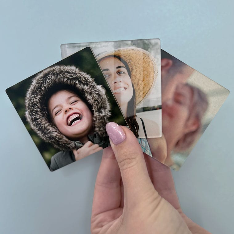 Listen, can you hear them? "Let me out, let me out...” That, my friend, is the desperate plea of the photos stuck inside your phone or computer pleading with you to be released and made into Photo Magnets! The good news is we’re here to help and your packs of personalized photo fridge magnets are only a few clicks away from becoming a reality. Choose from 3 products (Standard, Wooden or Acryic Photo Magnets) & a range of different sizes.