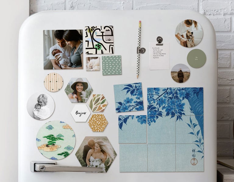 Photo magnets allow you to create an ever-changing, personalized photo gallery for your fridge (or for any magnetic surface). Effortlessly add, remove, swap & move your personalized magnets for that perfect, customized look.